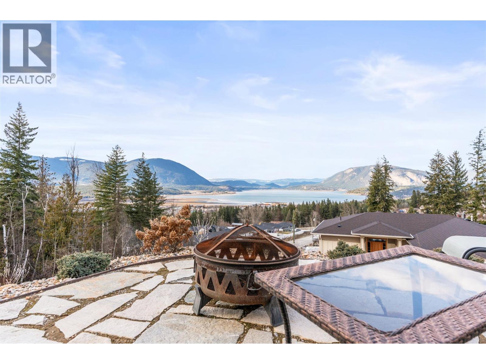 Welcome to this stunning, custom built, lake view rancher with walk out basement in Salmon Arm’s desirable Byersview subdivision. Beautifully designed, this home perfectly captures sweeping, unobstructed lake and mountain views. The main level offers a bright, open-concept layout with large windows that draw the outside into every space. The kitchen is both functional and refined, featuring quartz countertops, gas range, wine fridge, and a dreamy yet practical walk-in pantry. From the dining room, step onto a private, heated covered deck—an ideal place to soak in sunsets & Northern lights. A floor-to-ceiling rock fireplace adds warmth and character to the living room. The primary bedroom with walk in closet and en suite is complete with dual sinks & an oversized dual walk-in shower. A second bedroom, full bath & laundry area complete the main floor. The lower level adds significant flexibility with a spacious rec room, bedroom, & full bathroom for the main home. The walk-out basement also contains a full legal suite with separate entrance, laundry, & soundproofing—ideal for rental income or extended family while maintaining privacy. External chair lift for accessibility. Additional features include a heated double garage with stage 2 EV charger, RV power, and rough-in for a pool. Outside, the property is thoughtfully landscaped with raised garden beds & fire pit area, maximizing privacy. A well-rounded opportunity offering lifestyle, views & income potential all in one. (id:44574)