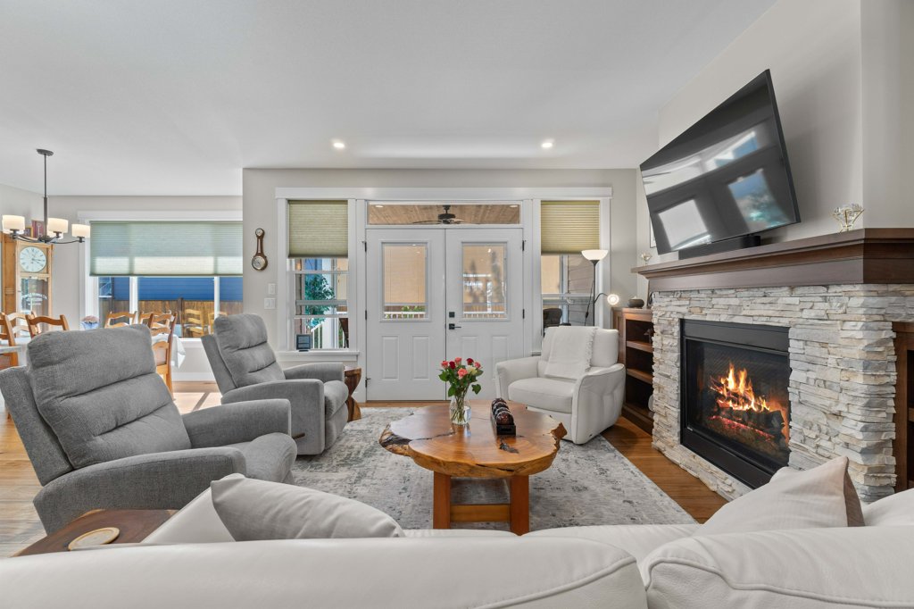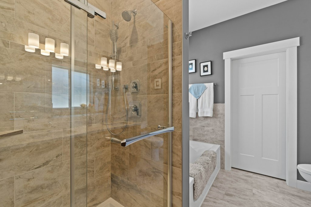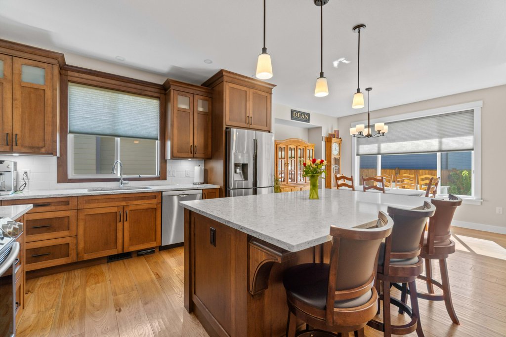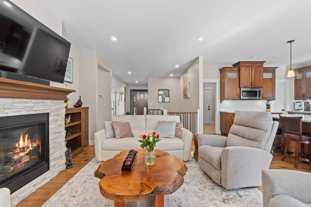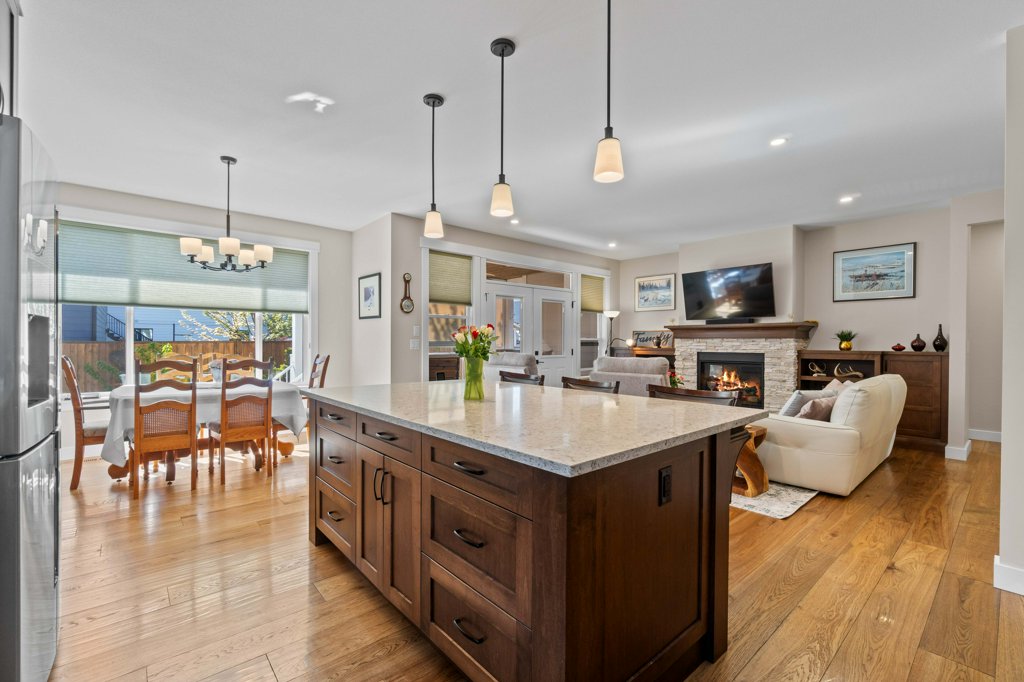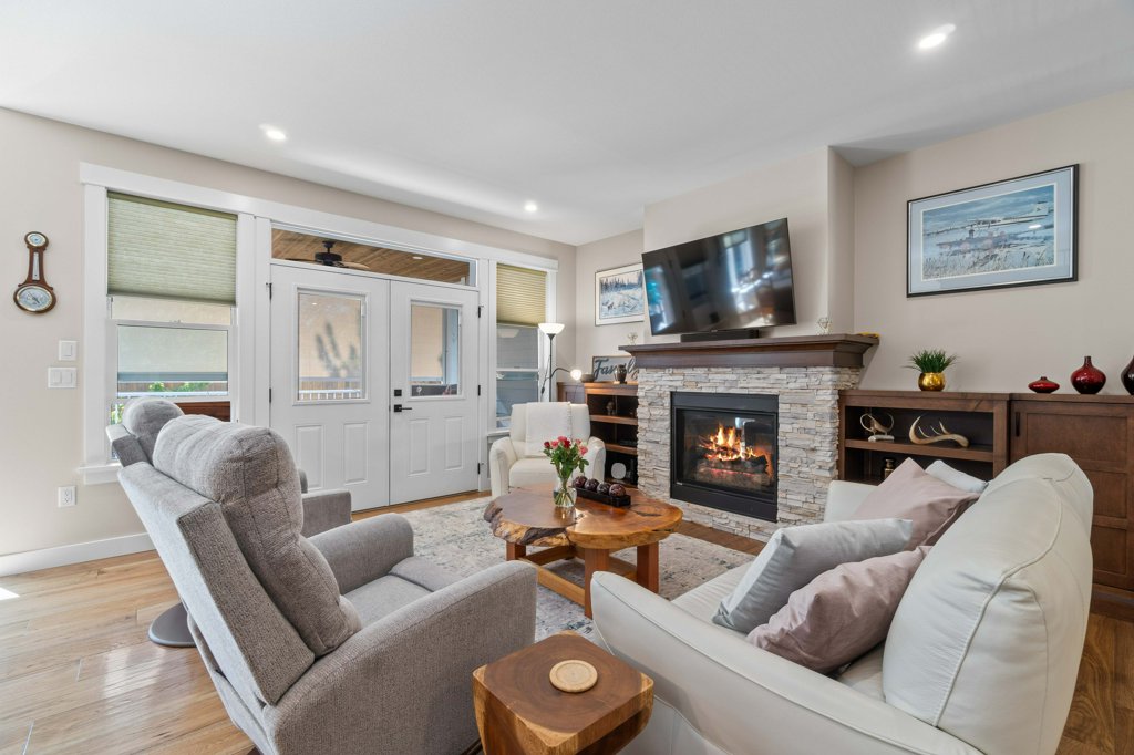 Immaculate 5-Bedroom Home in Sought-After Salmon Arm Neighborhood! Welcome to this beautifully crafted 2018 home, built by a respected local builder and situated in one of Salmon Arm’s most desirable neighborhoods. Offering 5 bedrooms and 3 bathrooms, this home combines high-end finishes, functional design, and exceptional comfort. Step inside to discover an open floor plan with hardwood floors and 9-foot ceilings throughout the main level. The gorgeous living room features a cozy gas fireplace and double doors that lead to a covered deck—perfect for entertaining—with a motorized privacy screen and serene views of the private, landscaped backyard. The chef’s kitchen boasts an oversized island with granite countertops, abundant cabinetry, a walk-in pantry, and top-of-the-line appliances. The luxurious primary suite includes a 5-piece ensuite with granite counters, dual sinks, heated floors, and a walk-in closet. Two additional bedrooms and a spacious laundry room—leading to a heated double garage—complete the main floor. The garage is equipped with stainless steel workbenches, cupboards, an automatic dehumidifier, and a built-in vacuum system that reaches all the way to the driveway. Downstairs, enjoy a fully finished walk-out basement with a large rec room, cold storage room for gardening enthusiasts, a bathroom with a walk-in shower and heated floors, a sauna room, a massive storage area, a utility room, and a 200-amp panel. Outside, the fully fenced and landscaped yard is a gardener’s dream, with irrigation system, raised garden beds, grape vines, and a cherry tree. Located near schools, walking trails, and all amenities, this home offers a perfect blend of convenience and tranquility—with wonderful neighbours to match!
