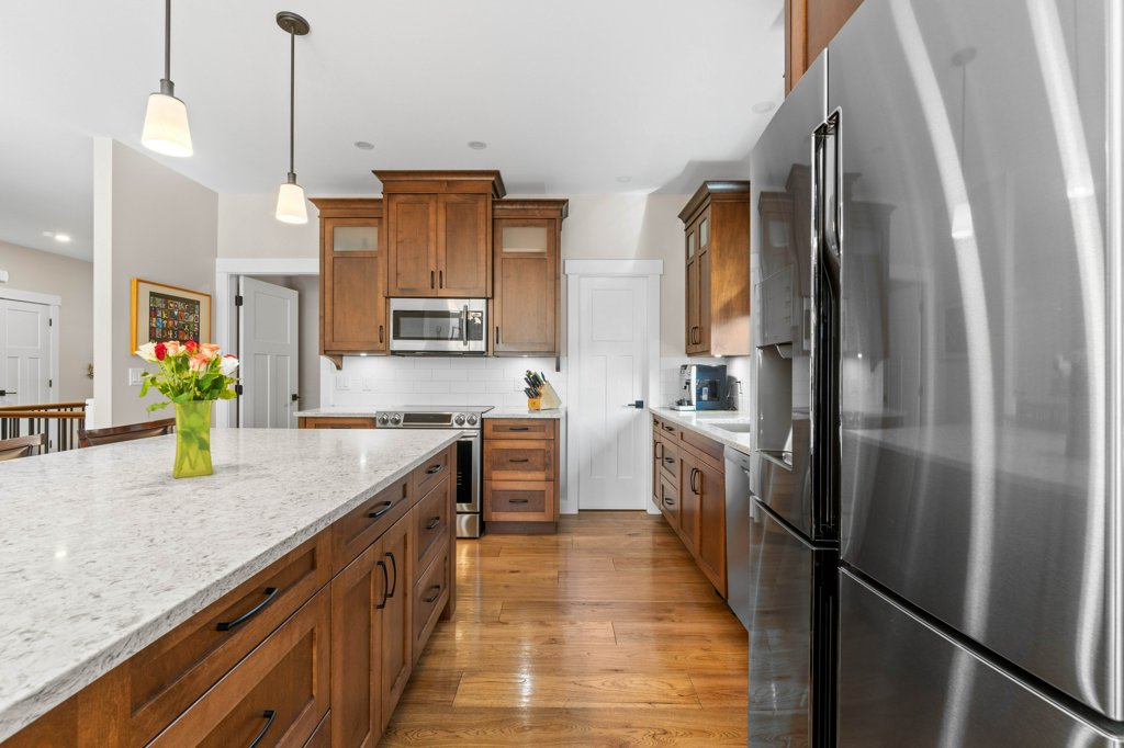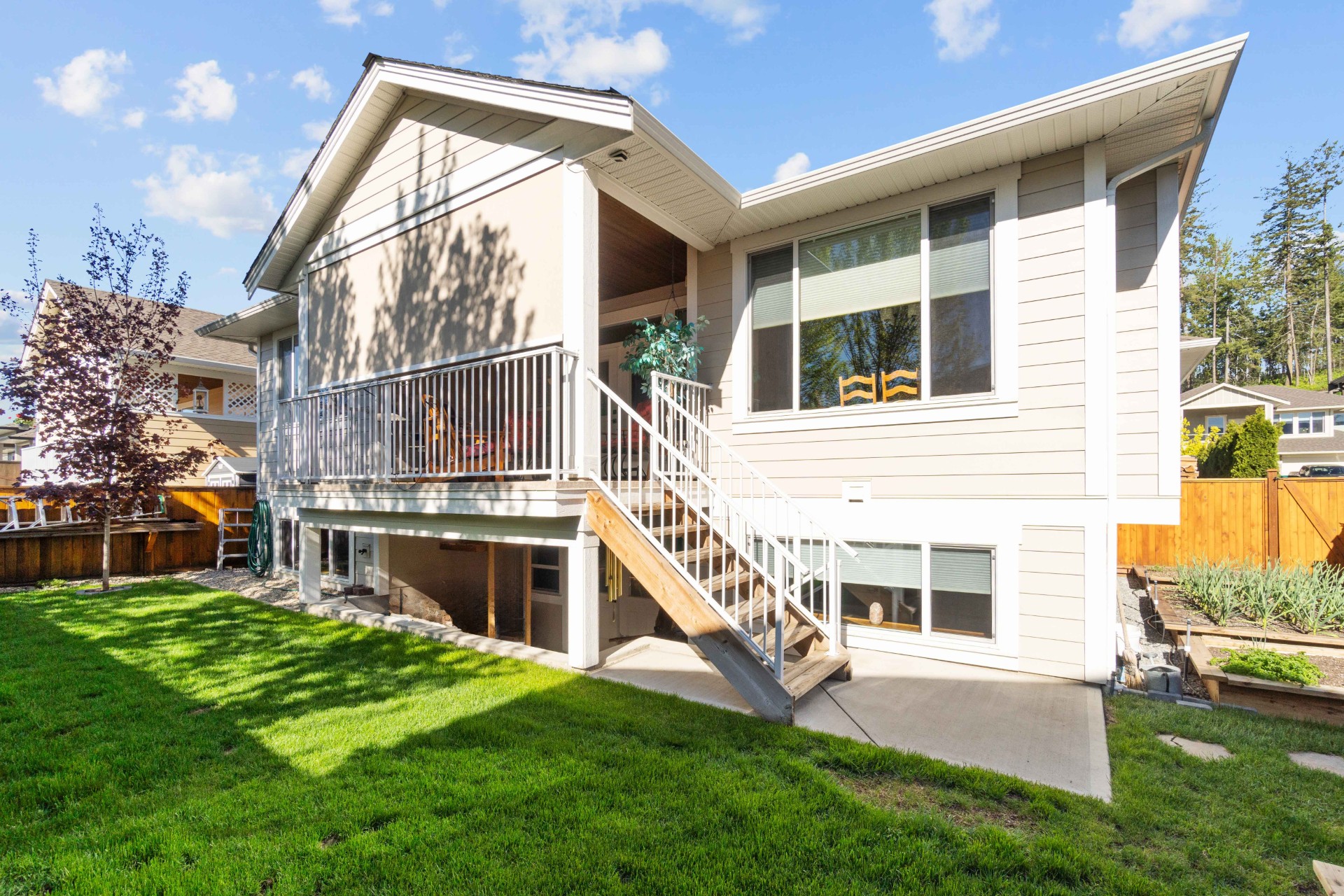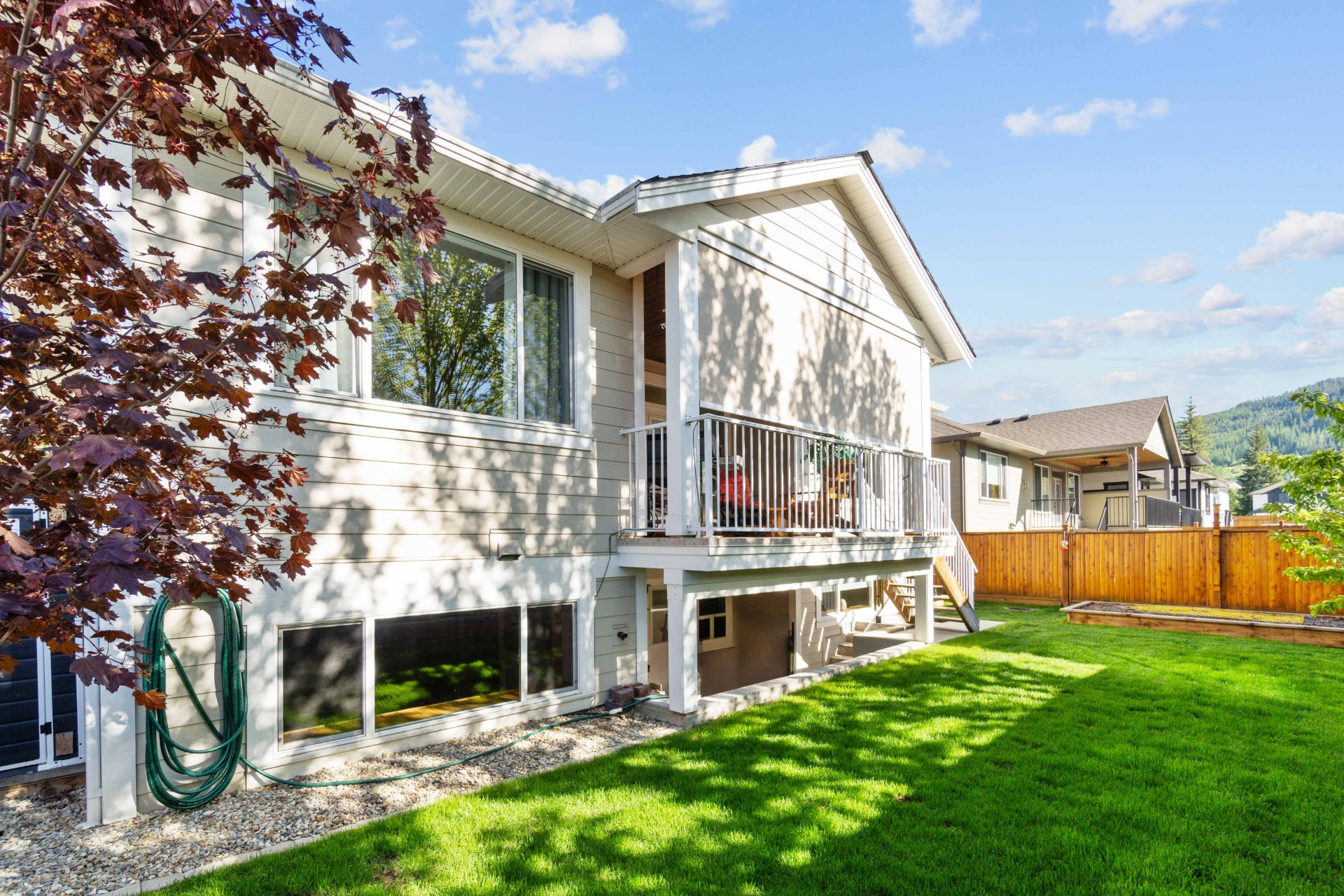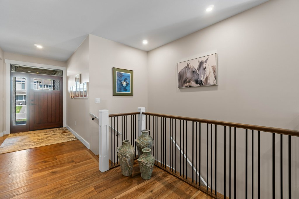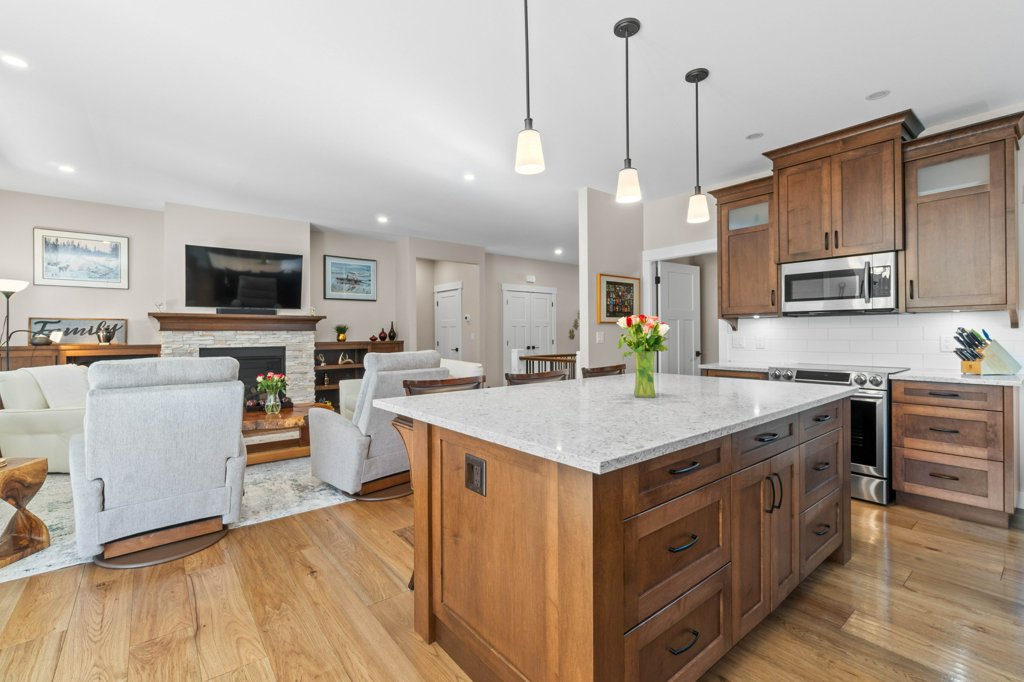 Immaculate 5-Bedroom Home in Sought-After Salmon Arm Neighborhood! Welcome to this beautifully crafted 2018 home, built by a respected local builder and situated in one of Salmon Arm’s most desirable neighborhoods. Offering 5 bedrooms and 3 bathrooms, this home combines high-end finishes, functional design, and exceptional comfort. Step inside to discover an open floor plan with hardwood floors and 9-foot ceilings throughout the main level. The gorgeous living room features a cozy gas fireplace and double doors that lead to a covered deck—perfect for entertaining—with a motorized privacy screen and serene views of the private, landscaped backyard. The chef’s kitchen boasts an oversized island with granite countertops, abundant cabinetry, a walk-in pantry, and top-of-the-line appliances. The luxurious primary suite includes a 5-piece ensuite with granite counters, dual sinks, heated floors, and a walk-in closet. Two additional bedrooms and a spacious laundry room—leading to a heated double garage—complete the main floor. The garage is equipped with stainless steel workbenches, cupboards, an automatic dehumidifier, and a built-in vacuum system that reaches all the way to the driveway. Downstairs, enjoy a fully finished walk-out basement with a large rec room, cold storage room for gardening enthusiasts, a bathroom with a walk-in shower and heated floors, a sauna room, a massive storage area, a utility room, and a 200-amp panel. Outside, the fully fenced and landscaped yard is a gardener’s dream, with irrigation system, raised garden beds, grape vines, and a cherry tree. Located near schools, walking trails, and all amenities, this home offers a perfect blend of convenience and tranquility—with wonderful neighbours to match!