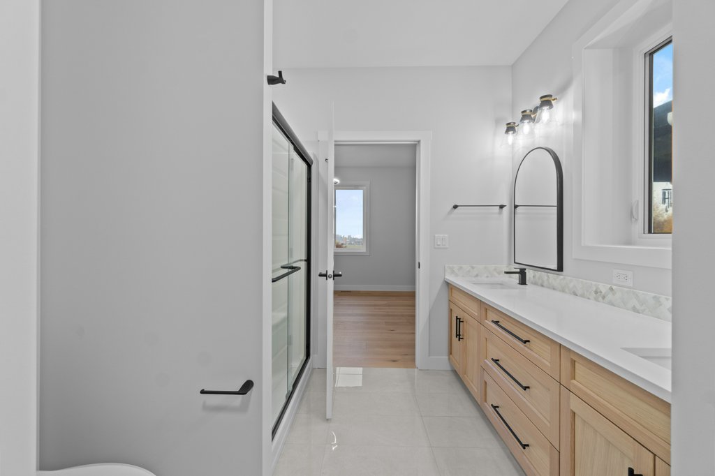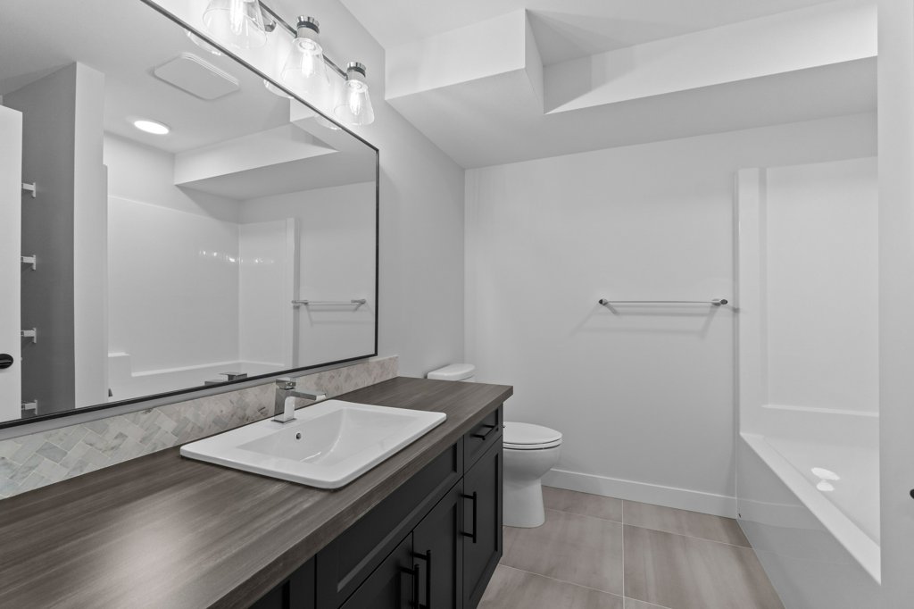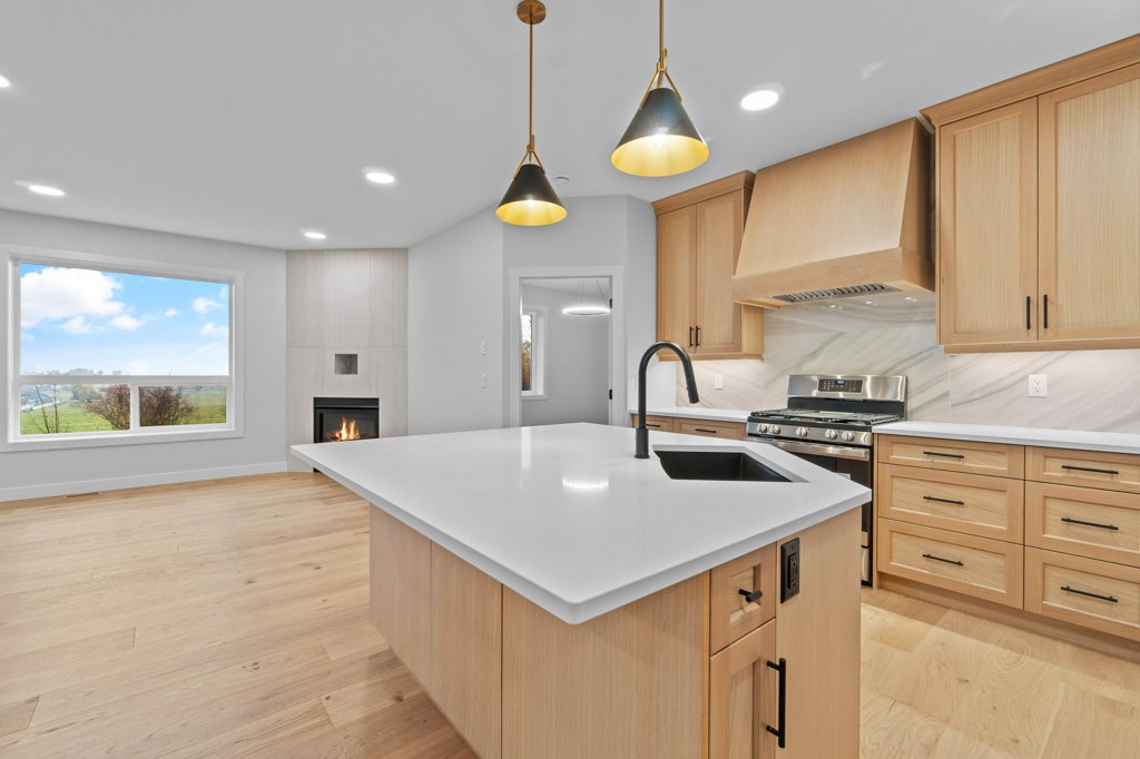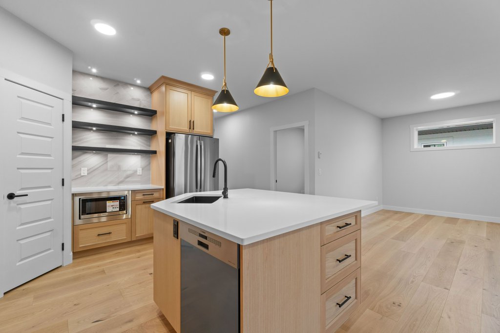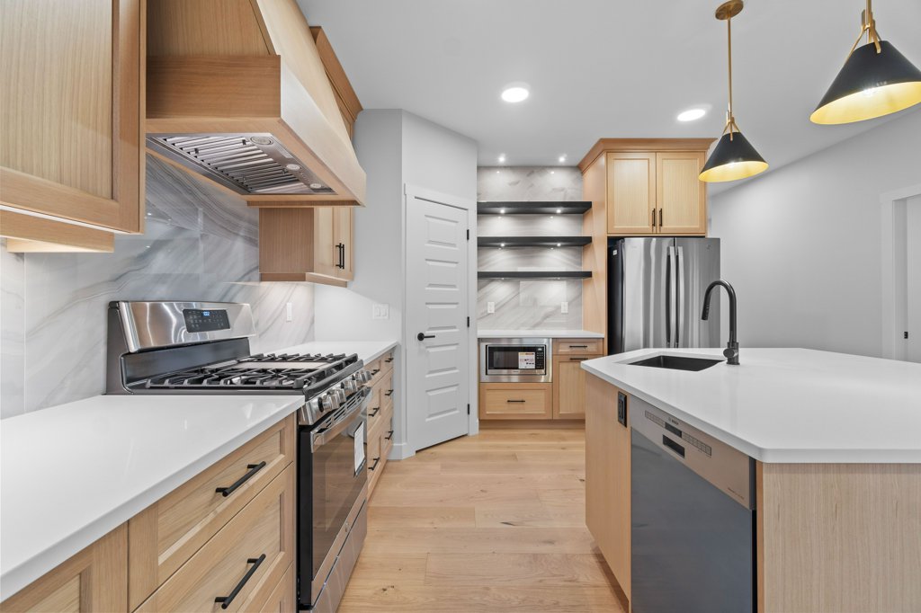 Stunning only begins to describe this beautifully designed 3-bedroom, 2.5 bath + den + bonus room home that showcases quality craftsmanship and high-end finishes throughout. From the moment you enter the spacious foyer, you’ll appreciate the attention to detail and thoughtful design. Featuring engineered hardwood flooring, ceramic tile, custom cabinetry, and quartz countertops, this home blends style with functionality. The kitchen is a chef’s dream—complete with a large island, walk-in pantry, gas stove, gorgeous over range hood fan, dishwasher, built-in microwave and stainless refrigerator. Enjoy the 9-ft ceilings, an inviting living room with a gas fireplace, dining room for family gatherings, den/office, main floor laundry with washer/dryer, a 2pc bath, and a spa like primary bedroom with 4 pc ensuite and walk-in closet. Don't forget the covered decks that extend your living space outdoors. The walk-out basement adds flexibility with a spacious family room, 2 additional bedrooms, a spacious 4 pc bathroom and a bonus/flex room. The attached 21’x21’ double garage offers plenty of parking and storage. Built with ICF construction to the trusses, this home is up to 80% more energy-efficient than traditional builds, offering significant savings on heating and cooling costs. Outside, this property comes with a fully landscaped yard (to be completed), lake and mountain views, and low strata fees of just $80/month, which include lawn care and road maintenance. No age restrictions—just modern, efficient living at its best!