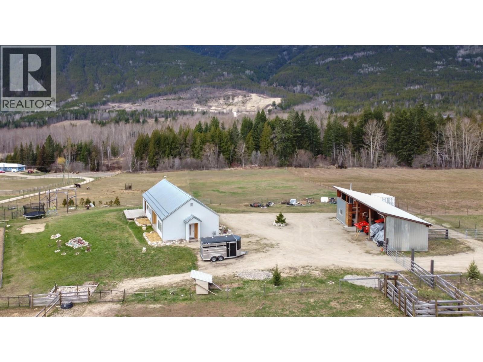 Near new executive calibre home on 19.23 acres in NW Salmon Arm just minutes for downtown. Fabulous property with secondary road access to the rear of the property off 60th Ave. Approximately 8 acres of fenced and cross fenced pasture surrounding the home and approximately 10 near flat acres of treed flat land. Creek and seasonal creek through the property with a terrific creekside recreational area. Custom designed and custom built home by Salmon Arms own McDiarmid Construction. New home warranty until 2032. Sure to please elegant yet functional 3 bedroom plus office home with modern decor, quality finishing and a fine attention to detail. Well constructed outbuildings including a loafing barn, horse shelter, kids play area, and a 3 bay implement shed with guest suite. New fencing and electric fencing. Water license and water rights form the creek but on municipal water for both the home and pasture livestock waterers. Within ant ALR and CSRD A-2 Rural Holding Zone allows a wide variety of uses. More information, photos, aerial images, drone photos, and complete interior virtual tours available on our web site or on demand. Call for more information or to book an appointment to view (id:44574)