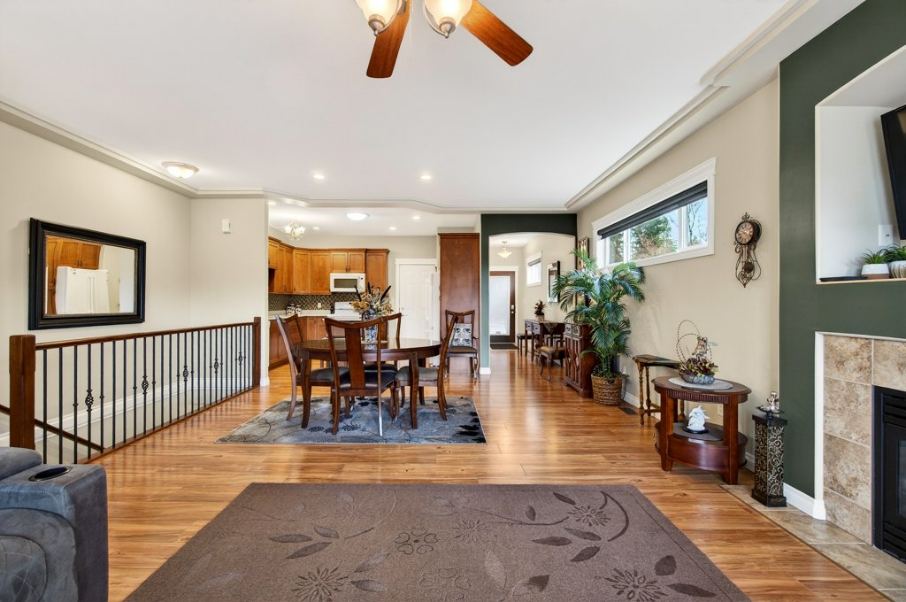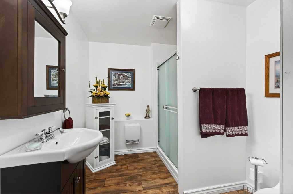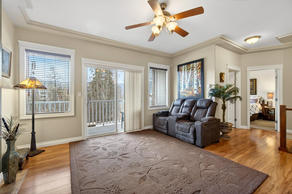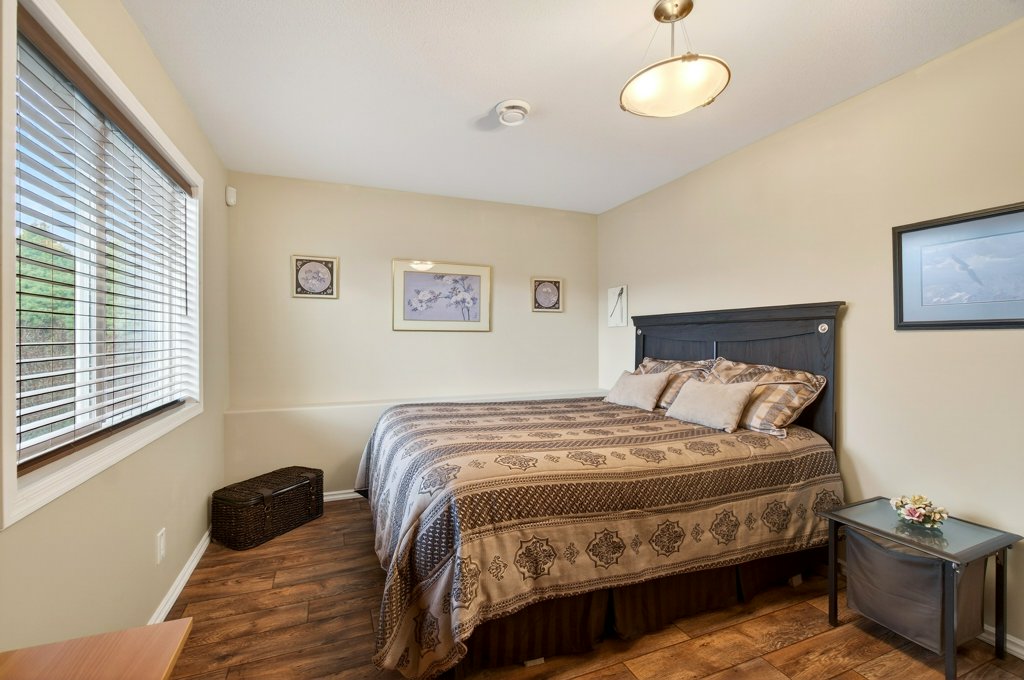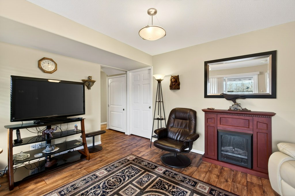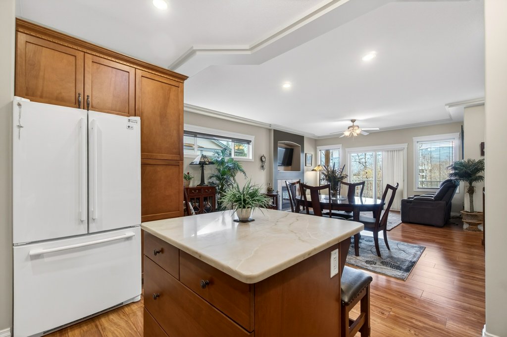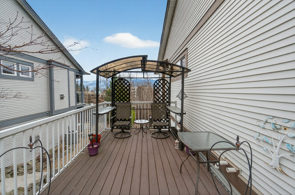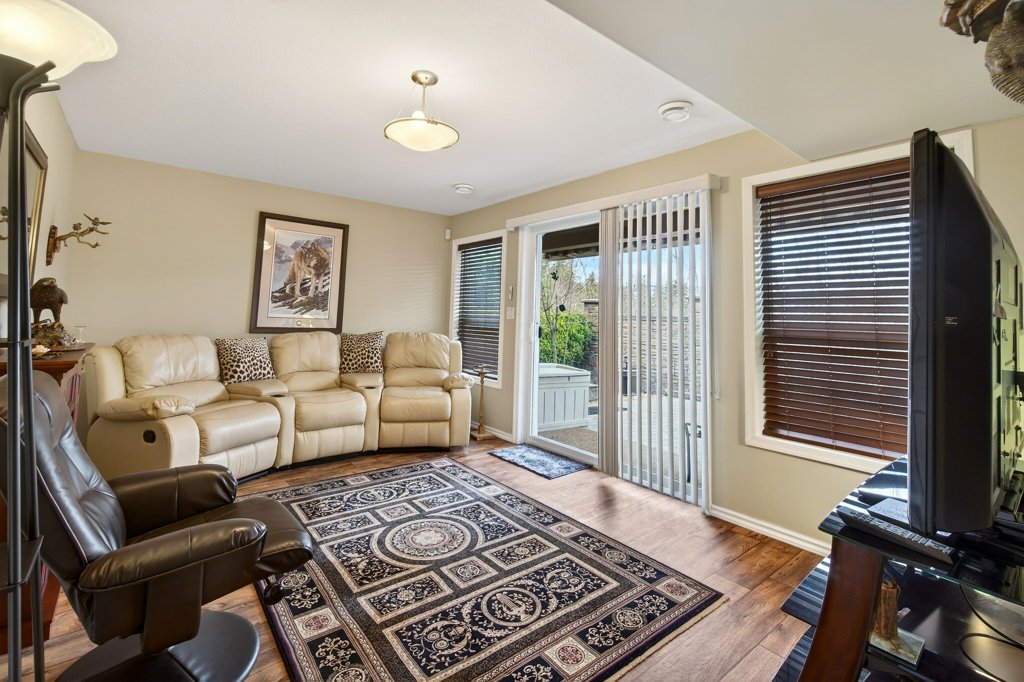 Immaculate one-owner home offering 3 bedrooms, 3 bathrooms, level-entry living, and a walkout basement, located in the sought-after Sherwood Oaks 55+ community. This desirable development is conveniently situated near walking trails, recreational facilities, and amenities. Step inside to a bright, welcoming layout with 9-foot ceilings, central A/C, and numerous custom touches throughout. The main living area is warm and inviting, featuring a cozy gas fireplace and seamless access to the covered deck with a retractable awning—perfect for enjoying warm summer days while taking in the beautiful mountain, pond, and lake views. The dining area is enhanced by a sun tunnel that fills the space with natural light, creating a beautiful ambience both day and night, and flows effortlessly into the kitchen, which has been thoughtfully updated with new quartz countertops, a functional island, and excellent layout for everyday living and entertaining. The spacious primary bedroom offers a bright walk-in closet and a large 4-piece ensuite, creating a comfortable and private retreat. The second bedroom enjoys beautiful mountain views, while the conveniently located laundry room is equipped with a sink, cabinetry and newer washer and dryer for added ease of living. The walkout basement provides great flexibility with a large family room featuring an electric fireplace and patio doors that open to a private, landscaped backyard. The lower patio also features a retractable awning, creating a comfortable outdoor space to enjoy in any weather. You’ll also find a third bedroom, a 3-piece bathroom, an unfinished mechanical room, storage room, and an storage/workshop area with potential to be converted into a fourth bedroom. The garage is well-appointed with storage lockers, workspace, and a newer garage door opener. The property also offers ample additional parking. A beautifully maintained home combining comfort, functionality, and a highly desirable location!