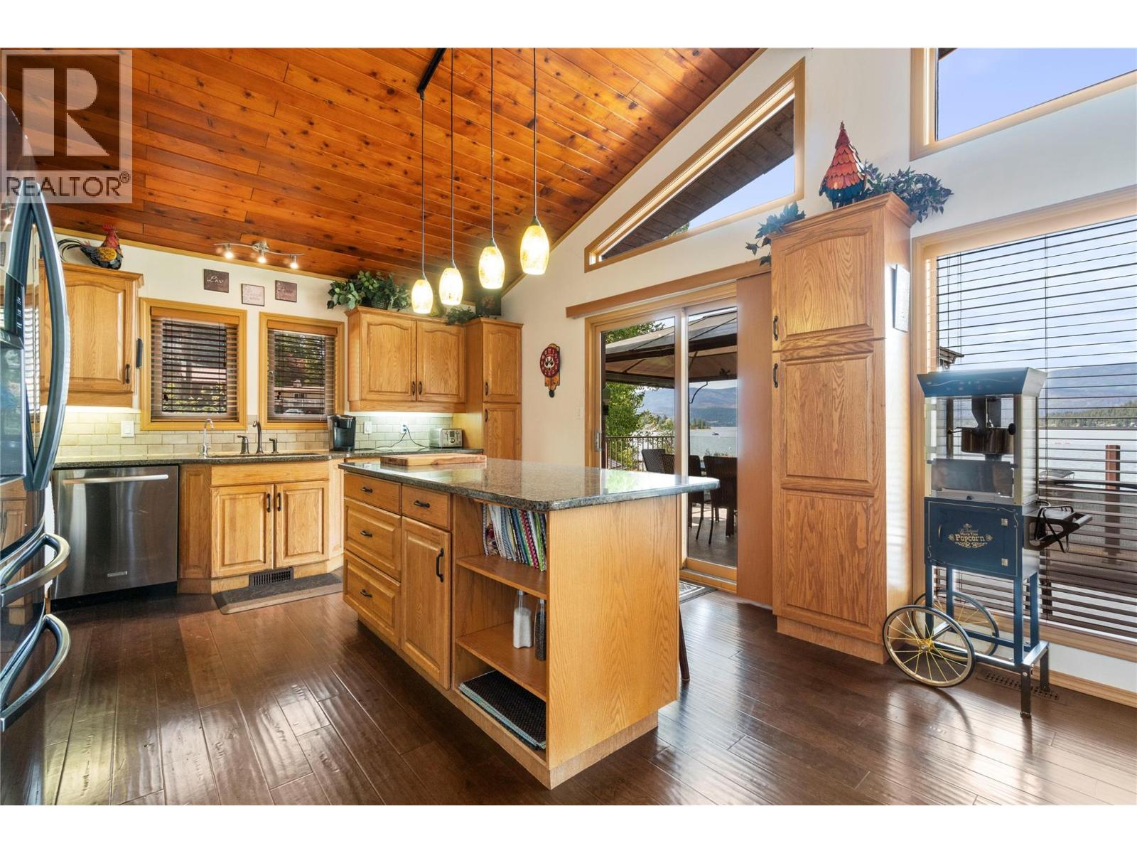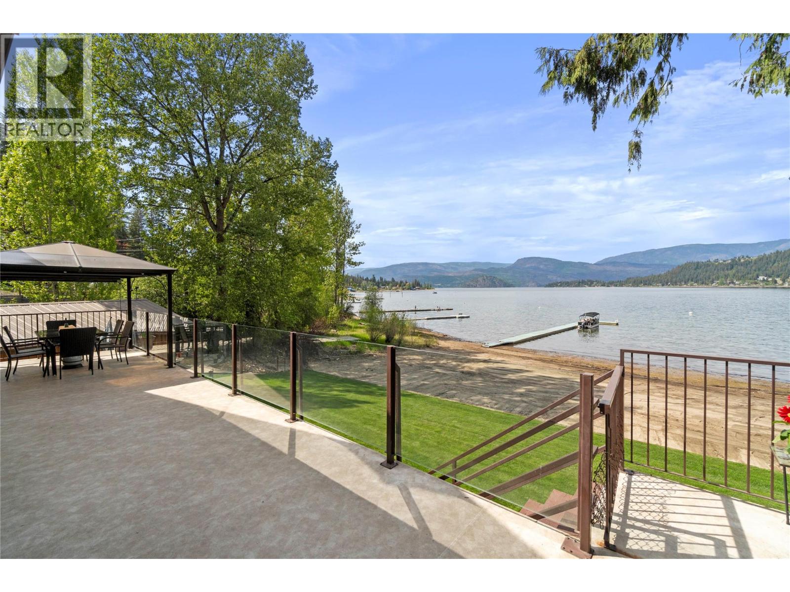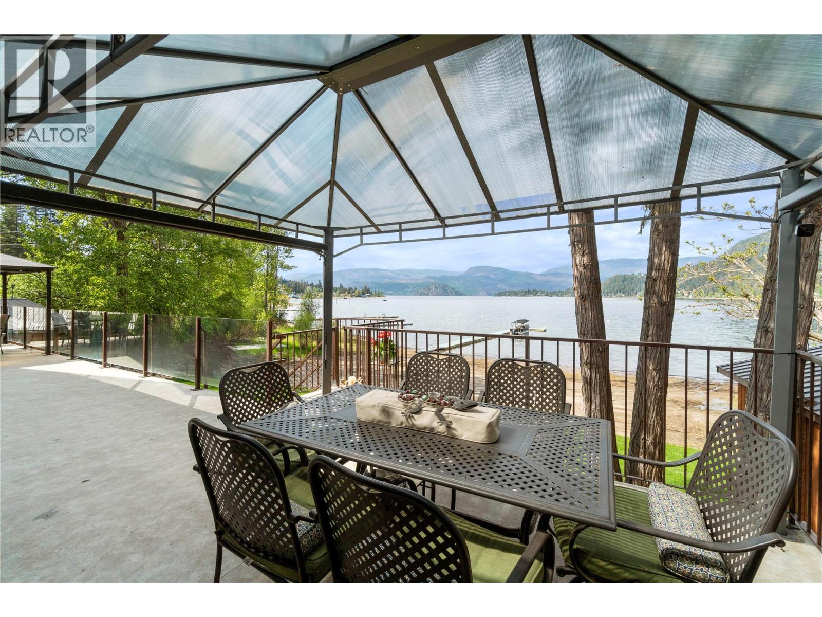 Great Blind Bay home on a soft, weedless, sandy beach with 121 feet of waterfront and a registered 130-foot dock. The home has been loved and well cared for. The setup from the home to the lake is brilliant, as the views of the Shuswap Lake and Copper Island are viewable from all the bedrooms with sliding doors onto deck, living room, kitchen and dining room, with 3 sliding doors onto expansive balcony. This gorgeous 2642 Sq ft Custom home has vaulted cedar ceilings, handmade cedar doors, 4 bedrooms and 3 bathrooms along with a 280 Sq ft self contained cozy Guest cottage. Engineered Hardwood covers the main floor of open, comfortable living space, and the kitchen is adorned with granite countertops and beautiful Oak cabinetry and high quality appliances. For car guys, you get a 1408 Sq ft 4 bay custom drive through garage with an acrylic pebble floor, plus 2 detached garages. The home is lake intake for water and it's own Septic. The driveway can park over 6 cars, along with fenced spaces for secure boat/trailer/RV storage and has a detached boathouse and shed. You will love the fire pit, sandy beach, beautiful level grassy play area and the expansive balcony with glass railings for entertaining family & guests. Homes and properties like this, do not come onto the market very often, so if you are interested in a year round Waterfront residence then do yourself a favour and view this home. The location is convenient to the store and restaurants and only 20 min. to Salmon Arm. (id:44574)