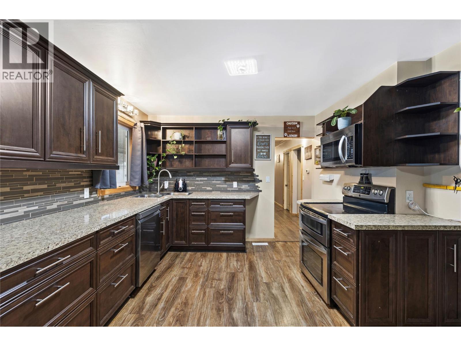 Spacious 0.64-acre property in central Barriere with mixed residential/commercial/light industrial zoning—ideal for a home-based business or future shop with ample parking for equipment & recreational toys. The updated home features 3 bedrooms on the main floor, including a primary suite with a 2-pc ensuite & private walkout to a covered deck & hot tub area. A bright living room with fireplace & updated laminate flooring flows into the custom 2016 kitchen, open to the dining area with direct access to the covered deck—ideal for year-round enjoyment. The partially finished basement offers excellent flexibility with separate outside entry, newer 3-piece bathroom, laundry, abundant storage, & space that could easily function as a rec room, playroom, or 4th bedroom. Significant upgrades provide peace of mind, including new windows and doors, updated gyprock, 200-amp electrical service, forced-air propane furnace and HVAC (2016), metal roof, and PEX plumbing (with some copper). Situated within walking distance to all Barriere amenities and just 45 minutes to Kamloops (id:44574)