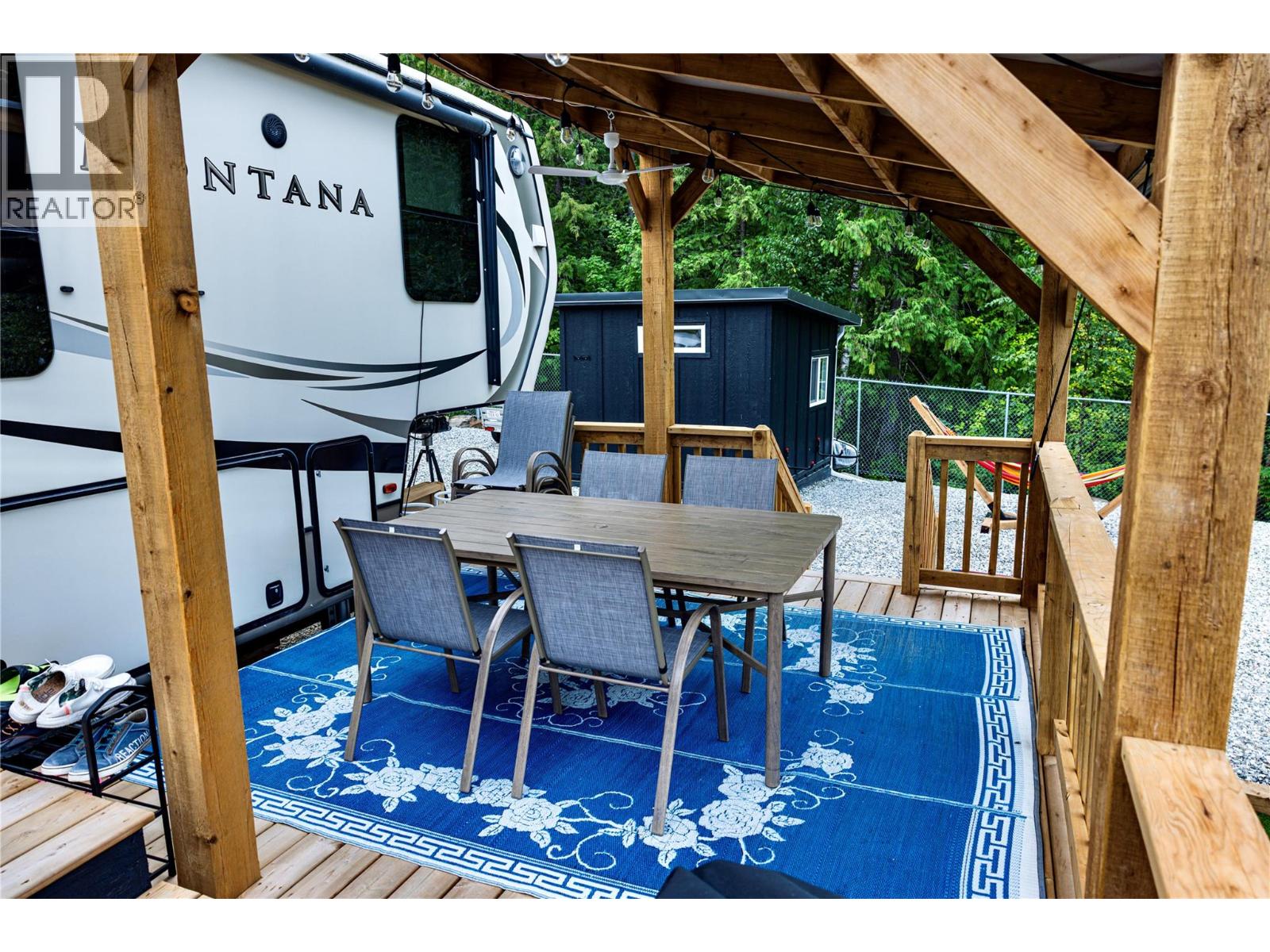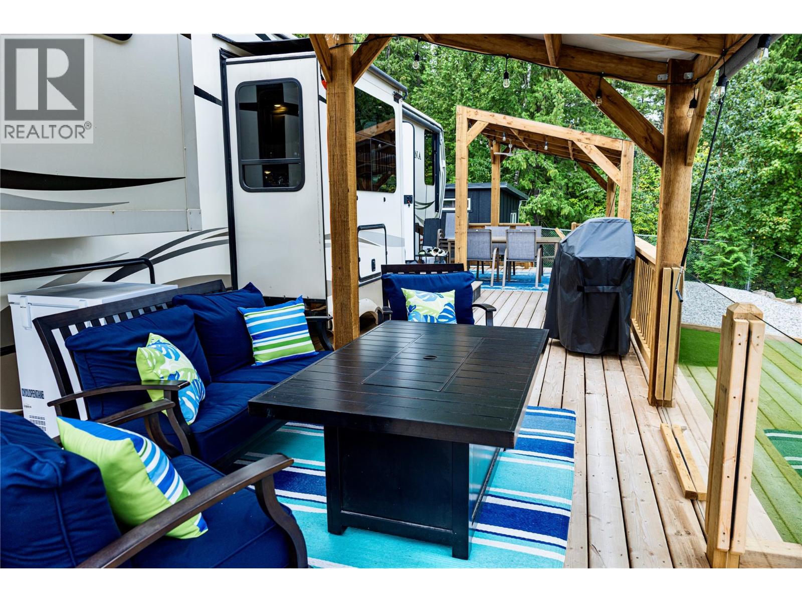 $2,050 YearlyLake View Lot in Mara Lake Estates. Welcome to Lot 4 in Mara Lake Estates, a beautifully landscaped Lake View lot (62.6’ x 115’) offering the ultimate Shuswap getaway. The property was completely transformed in spring 2025 with a zero-maintenance design, featuring AstroTurf, a new flower bed with irrigation and mulch, and a perfect space to relax or play games in the sun. Enjoy mornings on the patio or around the fire while taking in the warmth of the Mara Lake sunshine. Included is a 2018 Montana 3790 fifth wheel in pristine condition with five slide-outs, full kitchen, washer/dryer, large bathroom plumbed direct to sewer, new queen mattress, dual sofa beds, and entertainment centre. A massive custom deck with two covered roof areas, ceiling fans, patio lighting, and gas lines for the fire table, BBQ, and Blackstone griddle makes entertaining effortless. A fully powered 10x10 bunkie with internet, fridge, and microwave provides extra space for guests or kids. Mara Lake Estates is a gated resort community with annual fees of $2,050, covering water, sewer, garbage, lawn care, snow removal, and caretaker services. 2024 taxes: $280.98. The way the building rules are you, each lot will retain a view of the lake. Across from Mara Provincial Park and minutes to Hunter’s Range, this is turn-key lakeside living at its finest — simply arrive and enjoy! (id:44574)